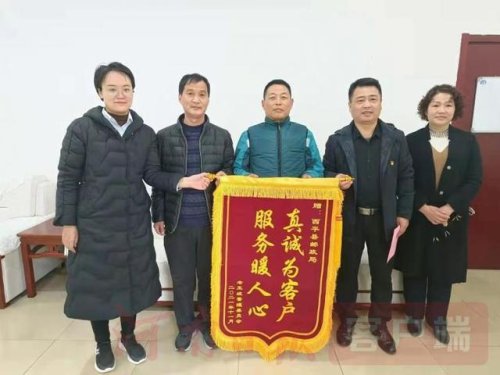 11月29日下午,西平县老王坡管理委员会武装部苗海民部长和办公室刘琳主任将一面写有“真诚为客户,服务暖人心”的锦旗以及一封饱含深情的表扬信送到了西平县邮政分公司,对西平邮政投递员高祥同志三十年如一日,真诚服务投递段道广大客户的事迹表达了由衷的赞扬,也真挚的感谢邮政公司培养出来的优秀员工。