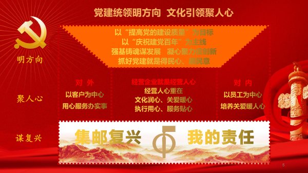 任永信的报告先从标题解读入手,党建统领明方向,因为方向比方法更重要。方向对了,事半功倍;方向不对,事倍功半。文化引领聚人心,人心齐,泰山移,经营企业重在经营人心,重在以文化人,以文化心。张艺谋在冬奥开幕邮票媒体见面会上谈到,邮票就像书一样,是历史的记忆,情感的珍藏,淡淡的乡愁,是连接人与人情感的纽带。这种情感的认同往往蕴含着巨大的价值。冰墩墩为什么火?冬奥邮票为什么热?既是天时地利人和,也离不开总导演的助力。