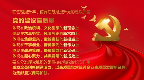 任永信表示,2021年,公司各级党组织坚持以习近平新时代中国特色社会主义思想为指导,不折不扣落实新时代党的建设总要求,按照党中央和集团党组统一部署,以“提高党的建设质量”为目标,以“融入中心工作”为导向,以“庆祝建党百年”为主线,以“党史学习教育”为重点,以“强化九个建设”为抓手,强基铸魂谋发展,凝心聚力促创新,各项工作取得显著成效,主要体现在九个方面: