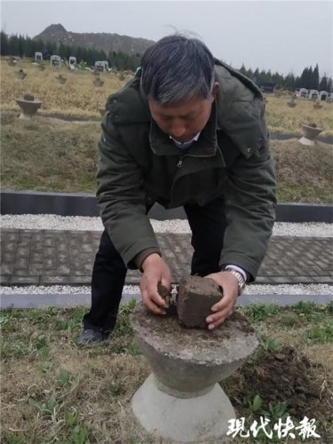 △守墓人卞康全为烈士墓填坟添土
