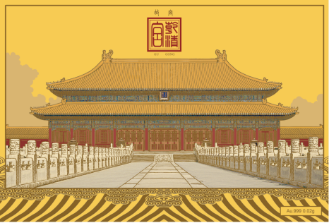 2020年为纪念紫禁城建成600周年等系列纪念活动,暨中国邮政发行《故宫博物院二》特种纪念邮票,选用邮票图稿为题材,制作一枚0.2克金明信片(148mm*100mm)产品,取得近10万枚的定量,形成收入规模近2000万元。