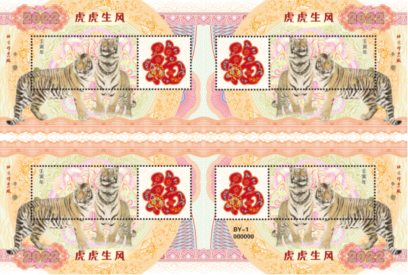 为纪念生肖虎年、回馈老客户,市场营销部特别策划了《壬寅年》生肖邮票特种工艺纪念张—《虎虎生风》,编码BY-1正式发行,限量3万套。 纪念张中的图案选自生肖邮票设计大师的作品。产品采用底纹浮雕、团花、微缩文字、无色荧光油墨、全真彩、香味油墨等工艺印制。搭配精美邮折作为年底回馈老客户的产品,既维护住了客户,又宣传了企业文化,提高了社会影响力。