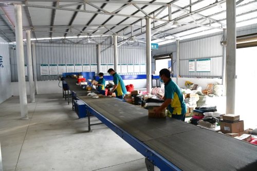 共配中心建在厚坡镇汽车站内的空地上,汽车站的候车区还包括特色农产品区、商超区和快递取件区,通过“邮快合作”,邮政联合其他快递公司在这里实现同仓共配,再以“交邮合作”通过“村村通”公交车,将快递代运到各村站点。