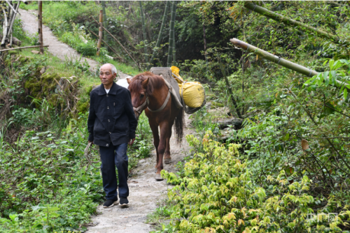 今年72岁的张人越,是湖南省新邵县大新镇三和村8组村民,从26岁开始,他就在崎岖陡峭的山路上帮乡亲们用马驮东西,给人送货上门。
