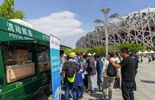 流动邮局一方面为在国网中心开展的“2023国网分级系列赛”提供邮政服务,另一方面为节日期间前来奥林匹克中心区的中外游客推介邮票、明信片,并提供加盖邮政纪念戳的服务。