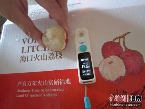 工作人员对荔枝甜度进行检测。