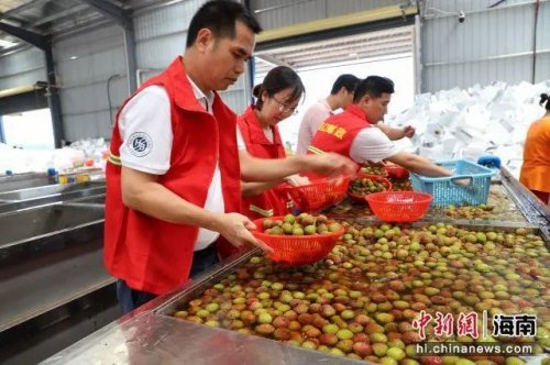 在中国邮政农品基地——海南海口三门坡荔枝基地,海口市邮政分公司金融业务部管理员钟昌宏介绍,因荔枝发货量激增,海口邮政组织帮扶工作队来荔枝打包现场支援,工作队会对每颗荔枝进行分拣把控,确保每颗发往全国的荔枝品质。