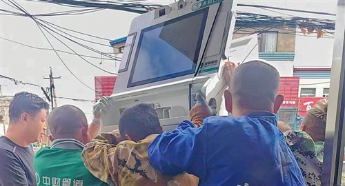 吉林省扶余市邮政分公司蔡家沟支局员工紧急转移自助机具到安全地方。□吉林省邮政分公司提供