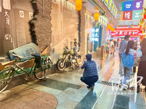 成都游客陆鸣就选择在10月5日的下午来到这里,用感受人文气息的方式结束“重庆游”。“虽然来过渝中多次,但重庆督邮街还是第一次来。这次也是看到有博主介绍,慕名而来。”他陪着孩子一路拍照,从督邮街口的邮政文物——“老牌”邮筒拍到不同时期的送信交通工具,此时的他变身一位“邮递员”,或陪着孩子坐在扁担上、抱着孩子坐在自行车上自拍,或让孩子独自坐在摩托车上为他拍,一路了解重庆邮政业的发展,也从重庆邮政业的发展中感受着这座城市的发展。“这条街很有意思,既有市井气,又有知识学,让我们看到了蕴含在重庆小巷里的人文历史。”