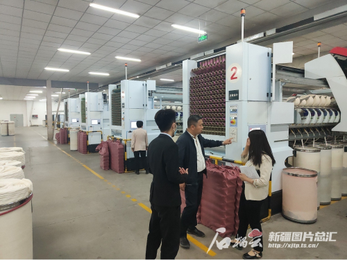 1月19日,邮储银行吐鲁番市分行客户经理在吐鲁番常新纺织有限公司了解企业生产经营情况。通讯员周敏 摄