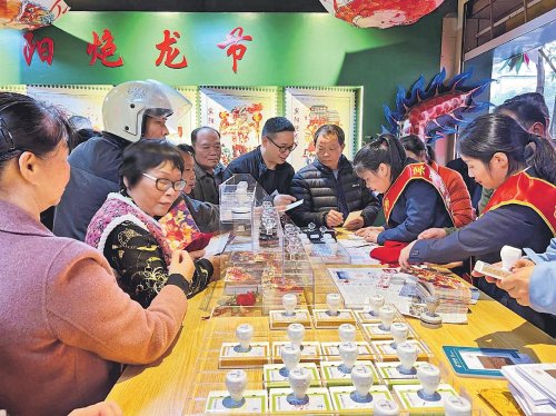 2月8—24日,由四川省德阳市人民政府主办的“祈福文庙·龙腾德阳”甲辰年德阳文庙新春游园会在文庙商圈举办。德阳市邮政分公司以德阳特色文创产品为依托,在文庙景区内开设“德阳文庙主题邮局”,为广大市民与游客提供邮政特色明信片、集章册、文创产品销售与集章集戳、游园指南等全方位服务。德阳邮政特别为此次游园活动制作主题纪念封6000枚,在现场放置了邮筒,让市民与游客将新春祝福寄往全国各地。□王一 俞颖 摄影报道