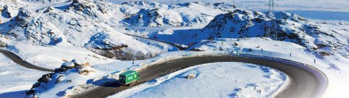 邮车行驶在前往禾木的盘山公路上。□张斌 摄
