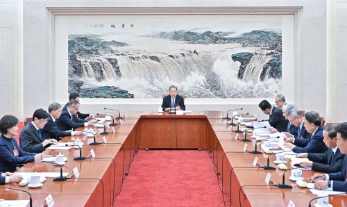 3月10日,十四届全国人大二次会议主席团常务主席第二次会议在北京人民大会堂举行。大会主席团常务主席、全国人大常委会委员长赵乐际主持会议。新华社记者 岳月伟 摄