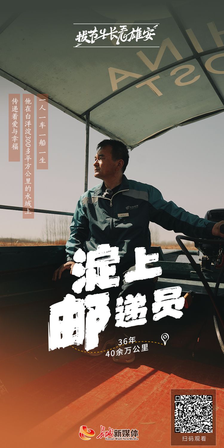 年复一年,日复一日,他驾船往来在白洋淀,见过风,也见过雨;见过荷,也见过苇,为淀区近4万名乡亲收件发件,也传递着爱与希望。