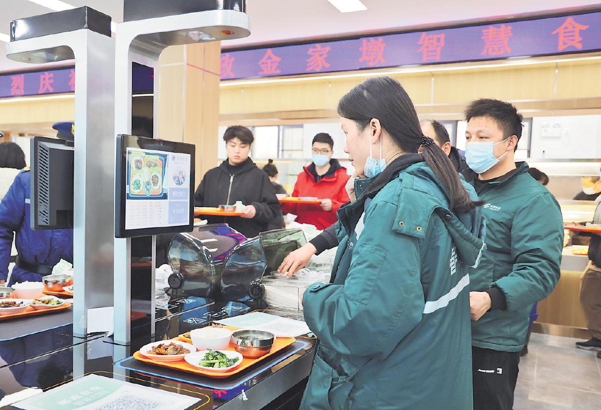 聚焦员工关注的就餐排队问题,新食堂还注入了智慧新体验,开启“刷脸吃饭”新模式。这个集美味和科技于一身的食堂,配备了视觉结算系统,可以自动识别餐具菜品,完成一体化无卡点餐操作,实现线上充值、“刷脸”“秒付”,简化员工办卡就餐、餐卡充值流程,减少排队时间,优化用餐体验。此外,该食堂还设置打包带餐区,为不便离岗的员工提供便利,全方位满足了一线员工的个性化需求。