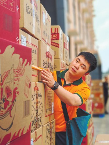 柳州市邮政分公司揽投员正在清点将要邮寄的螺蛳粉邮件。 □中国邮政报记者 吕文礼 摄