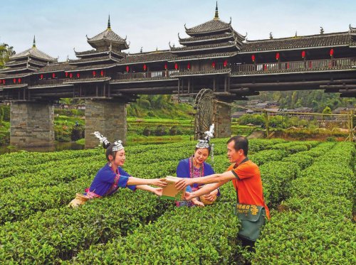 三江侗族自治县邮政分公司投递员走进田间,将邮件送到程阳八寨农户手中。□曾祥文 摄