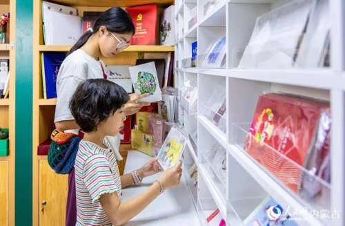 6月18日,来自福建的游客在呼和浩特市玉泉区塞上老街旅游休闲街区“塞上主题邮局”内参观、选购。
