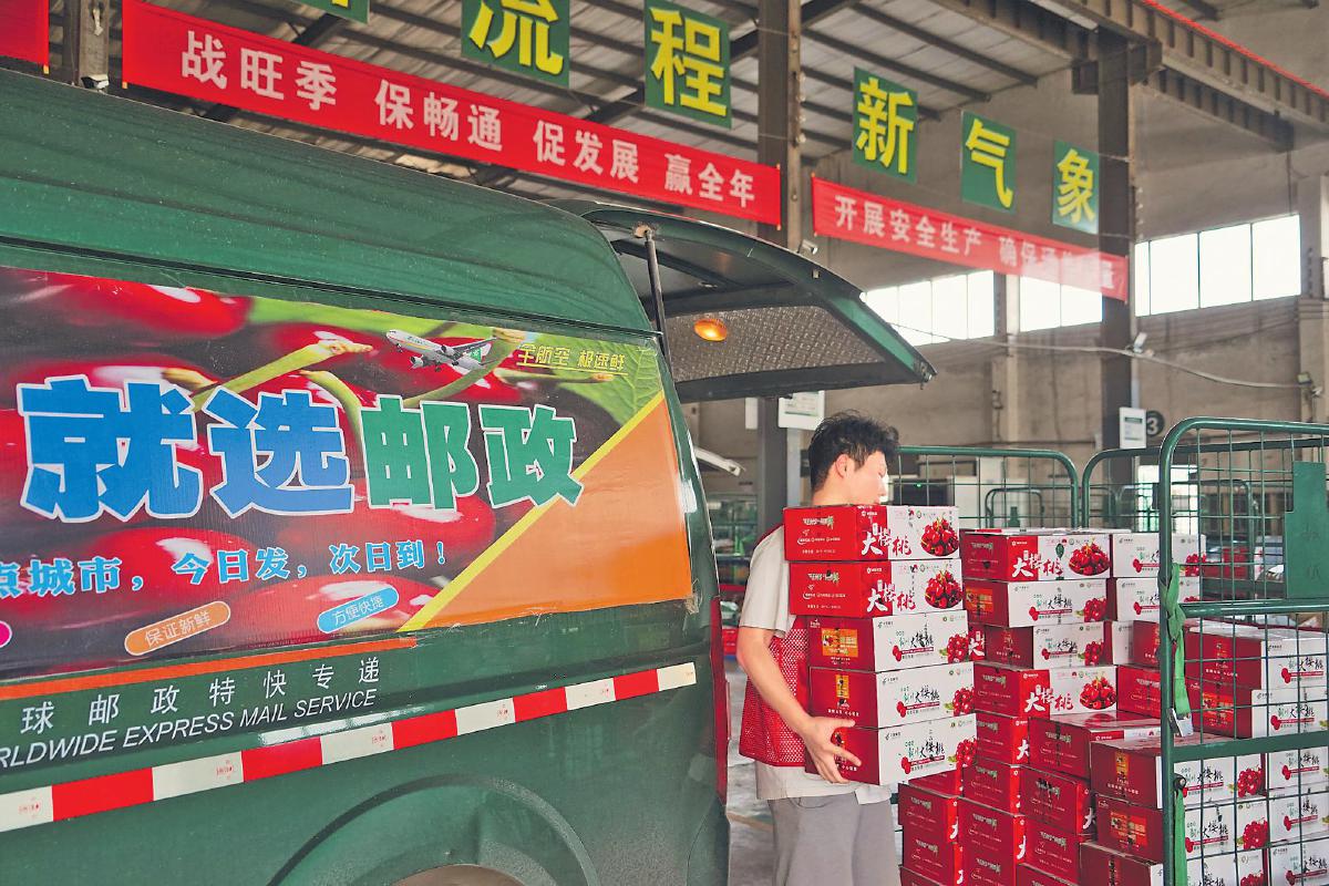 赵明明的樱桃园、任素茂的合作社、电商客户的产地仓、郭家庄村的交易市场……在这个“樱桃季”,邮政人以服务乡村振兴为己任,为解决樱桃产业的“销售难”“寄递难”“融资难”而奔波忙碌。从线上线下销售推广到“航空+冷链”多式联运,从普惠金融服务支持到赋能产业提质升级,邮政以“极速鲜”全产业链惠农服务生态,不断推动乡村特色产业发展,为服务乡村振兴注入了新活力、新动能。