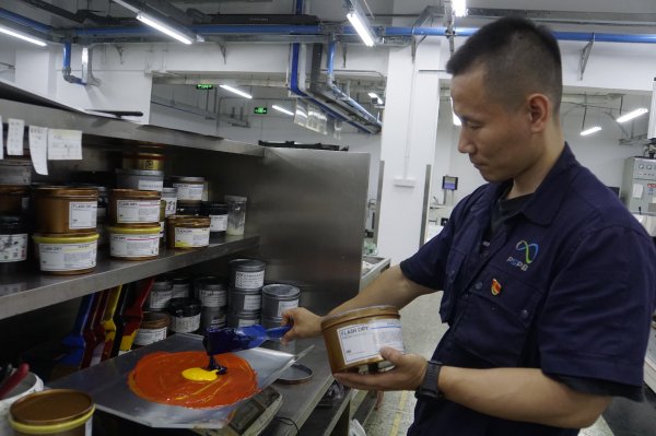 为了解水性油墨的特性,米伟翻阅了专业书籍,摸索试验,并带领机组人员与油墨厂商边实践边研讨,寻求最为合适的油墨成分配比。通过改变操作手法不断调试其印刷适性,最终找到了适合邮票印刷的合理参数,在印刷界实现了变道超车。