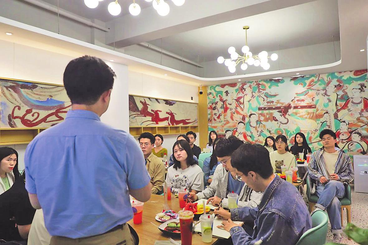 该主题邮局集寄递、文创、集藏、打印、共享办公等功能于一体。特别是共享办公区域,有着50平方米的共享研讨区,四周装饰风格具有敦煌元素,营造出浓浓的文化氛围。在这里可以进行小型的聚会、联谊,甚至Livehouse。同时,还可以在安静的氛围中,捧读一本有意思的书,度过一个愉快的下午,感受校园时光的温馨。