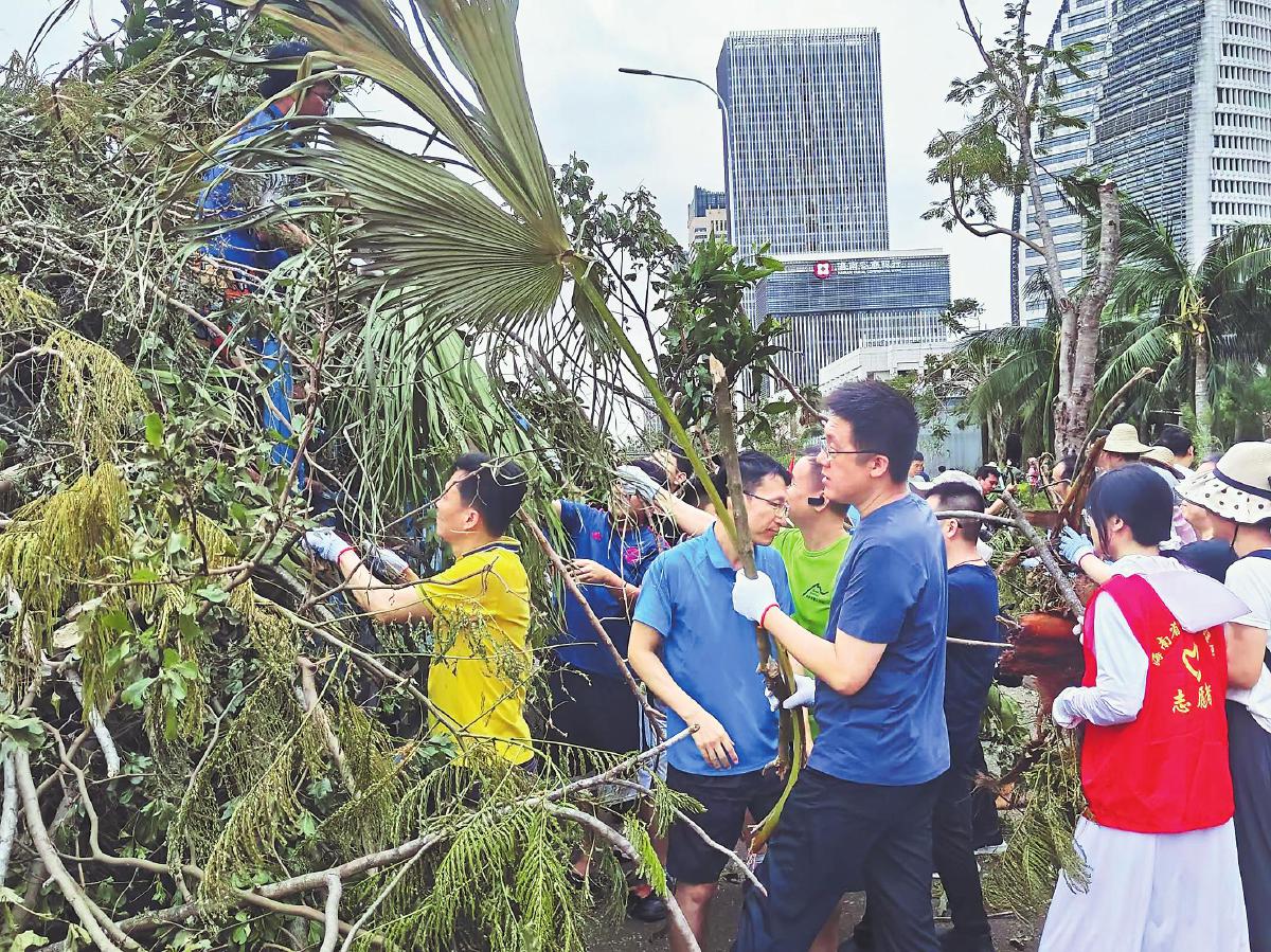 9月8日下午,海南省分公司直属机关党委组织40名机关党员参与清理道路障碍物,为疏通道路出力;9月9日,再次组织38名机关党员成立志愿服务队,深入海口市海秀社区帮助开展灾后重建工作。定安县邮政分公司在机关办公大楼启动应急发电设备后,主动在大楼入口及附近的报刊亭设置充电点,为周边居民提供免费充电服务,让他们能够向亲朋好友报平安。