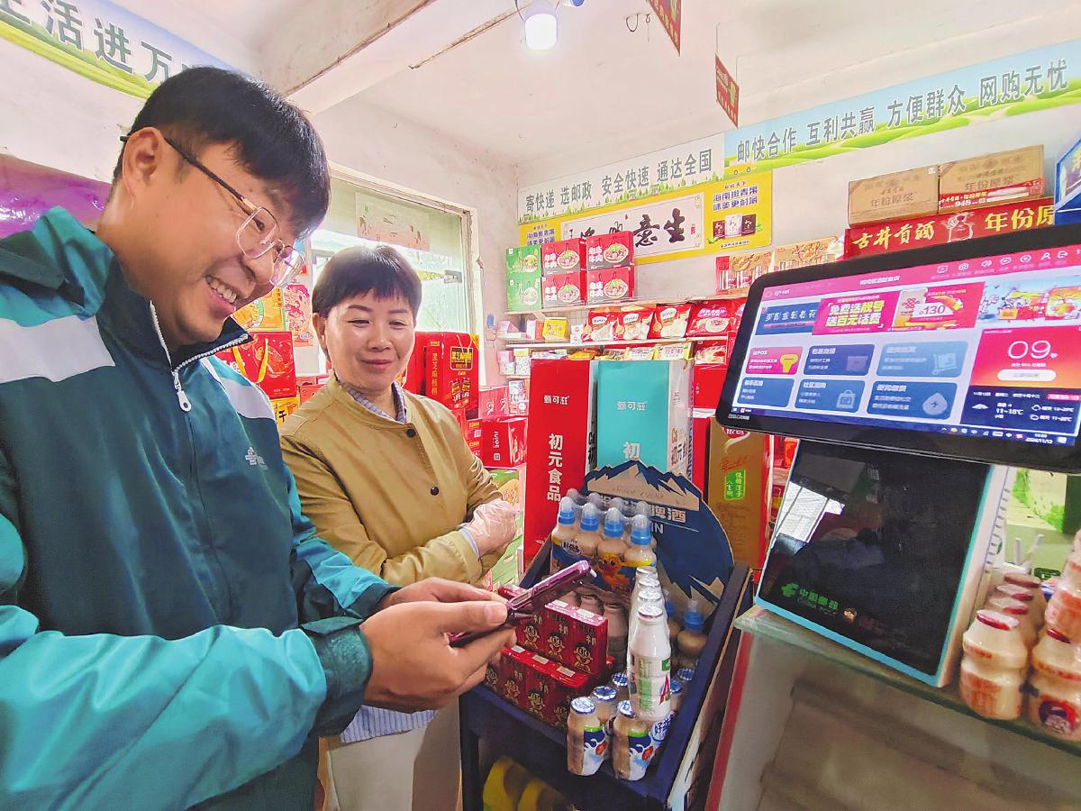 邮政地推人员开展常态化巡店工作。□范源 摄