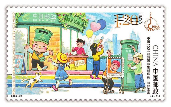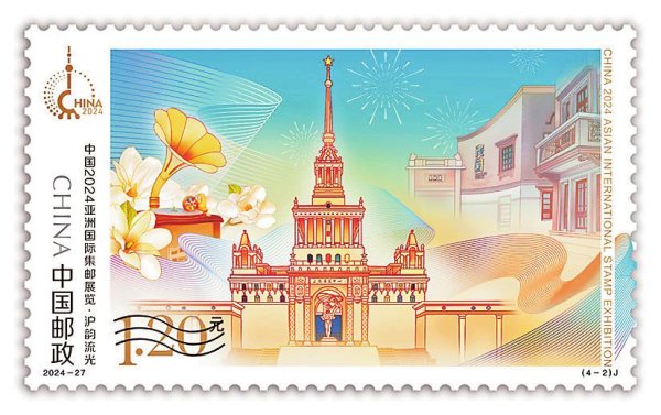中国邮政定于2024年11月29日发行2024-27J《中国2024亚洲国际集邮展览》纪念邮票一套4枚、小型张1枚。邮票名称分别为“鼎启新章”“沪韵流光”“邮梦未来”“邮博古今”,小型张名为“浦江朝晖”。邮票设计者分别为夏竞秋、王晨、景绍宗、潘虎,小型张设计者为王虎鸣。