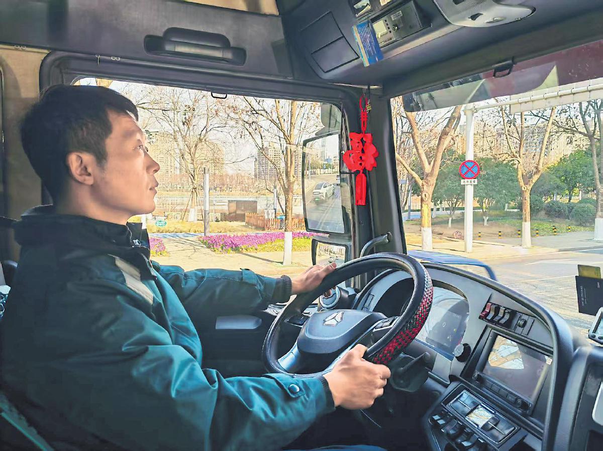 在忙碌中,陈文海会不时扫视一眼挂在驾驶室左侧的“平安福”,这是家人送给他的。“平安福”带来了年味,也寄托着他70多岁的父母、勤劳持家的妻子、就读高三的女儿的牵挂,提醒着他注意安全和保重身体。