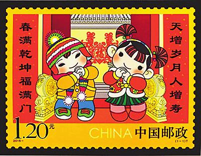 2015年1月10日,中国邮政发行了第一枚《拜年》特种邮票。