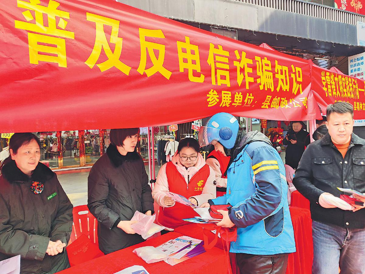 为弘扬志愿服务精神、进一步普及反电信诈骗知识、有效遏制电信诈骗案件的发生、提升市民反诈骗意识和能力,3月5日,安徽省宿州市砀山县邮政分公司员工走进梨花里商业街中心广场开展“普及反电信诈骗知识”学雷锋志愿活动。 □蔺满满 摄影报道