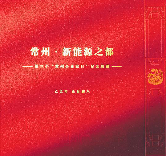 早在2023年首个“常州企业家日”前,常州邮政创新提供的纪念邮折方案就以其独特的意义、精致的设计、突出的文化元素,得到了常州市领导和企业家们的一致好评。第三个“常州企业家日”前,常州市政府以“常州·新能源之都”为主题,继续委托常州邮政定制纪念邮折。连续3年,“常州企业家日”纪念邮折成为常州企业家和市民视野中“重要的一抹红色”,极大地提升了邮政企业形象和影响力。