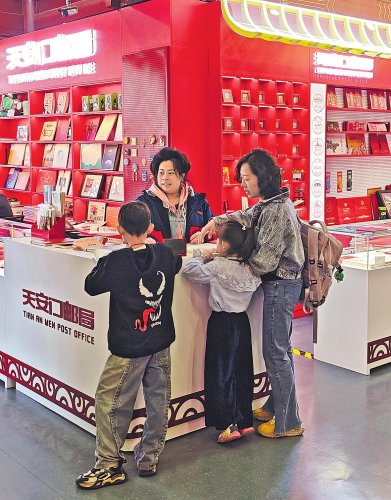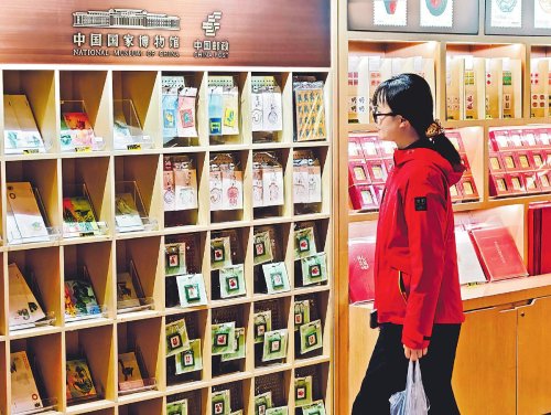 中国国家博物馆主题邮局内陈列着以国博馆藏为灵感的丰富邮品,游客可以用不同文物主题的邮戳盖章留念,感受集邮文化的独特魅力。