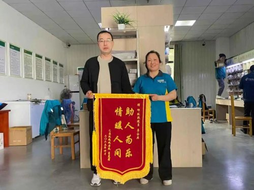 4月14日,湖北荆州市沙市区太岳揽投部上演感人一幕,市民陈先生将一面写着“助人为乐 情暖人间”的锦旗交到邮递员李合英手中,代表其85岁父亲感谢她的救命之恩。