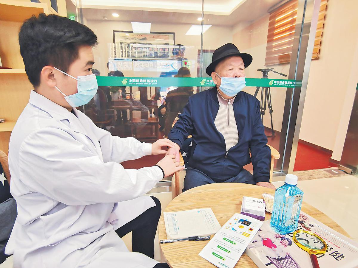 老年客户参加东庄支行组织的健康义诊活动。