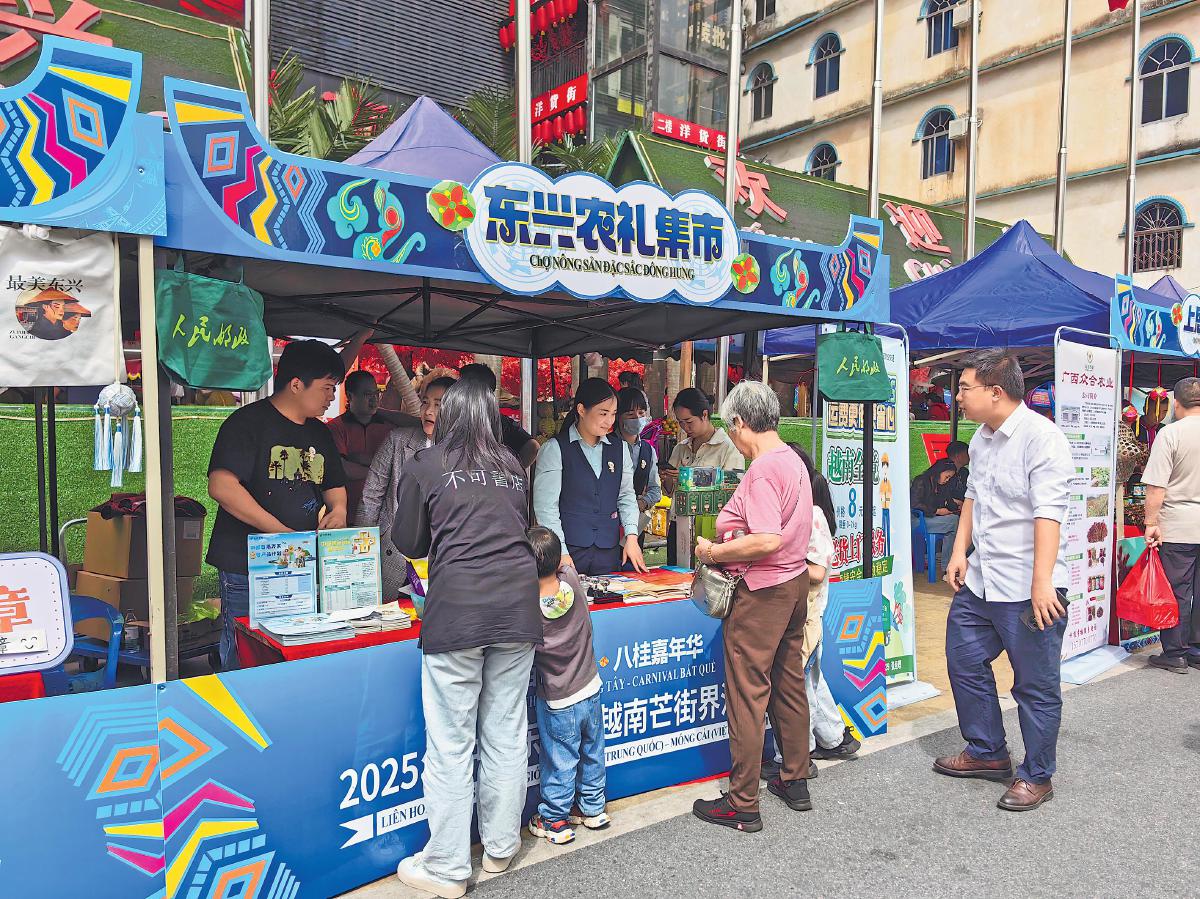 今年是中越建交75周年。4月13日,“2025年中国东兴—越南芒街界河大联欢”活动在广西壮族自治区防城港市东兴国门景区举行。东兴市邮政分公司在活动现场设置展位,提供邮政服务、展示文创产品,并开展章戳打卡活动。章戳图案涵盖壮锦、铜鼓、绣球等少数民族元素,以及东兴侨批馆、上思布透温泉、防城白浪滩等当地景点,受到游客的青睐。