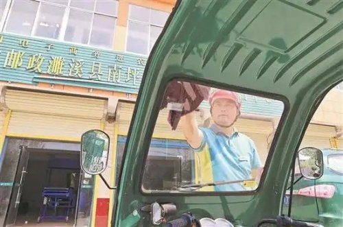近日,中国邮政集团有限公司安徽省濉溪县分公司南坪镇级运营中心乡邮投递员、全国劳模刘雷锋在清洁车辆,准备出发。