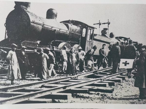 沿着铁路救治伤员的救护队。