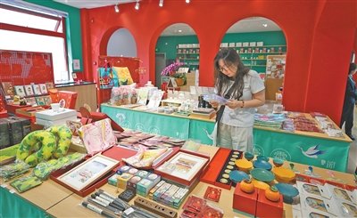 游客在北京地安门主题邮局选购文创产品。富田 摄(影像中国)
