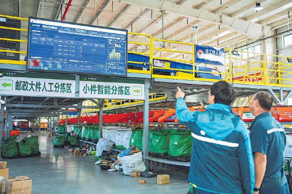 共配中心的大屏幕上,展示的是邮政新一代寄递平台,可查询人均揽收量、投递量、投递效率等信息,依据这些数据,能快速、直观地掌握生产作业情况。淅川县分公司揽投部经理罗新伟指着大屏介绍,三级物流节点的电子地图、每天进出口和各乡镇的业务量以及当日各品牌快递业务量占比等“客货邮”运营数据一目了然。