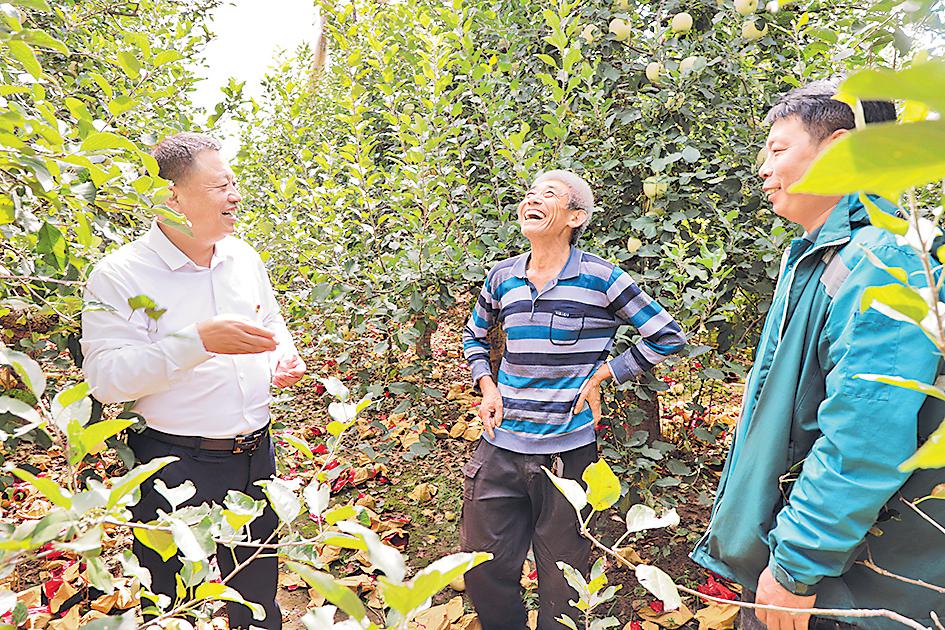 邢台市城区分公司党员专项服务队队员走访果农、了解需求。