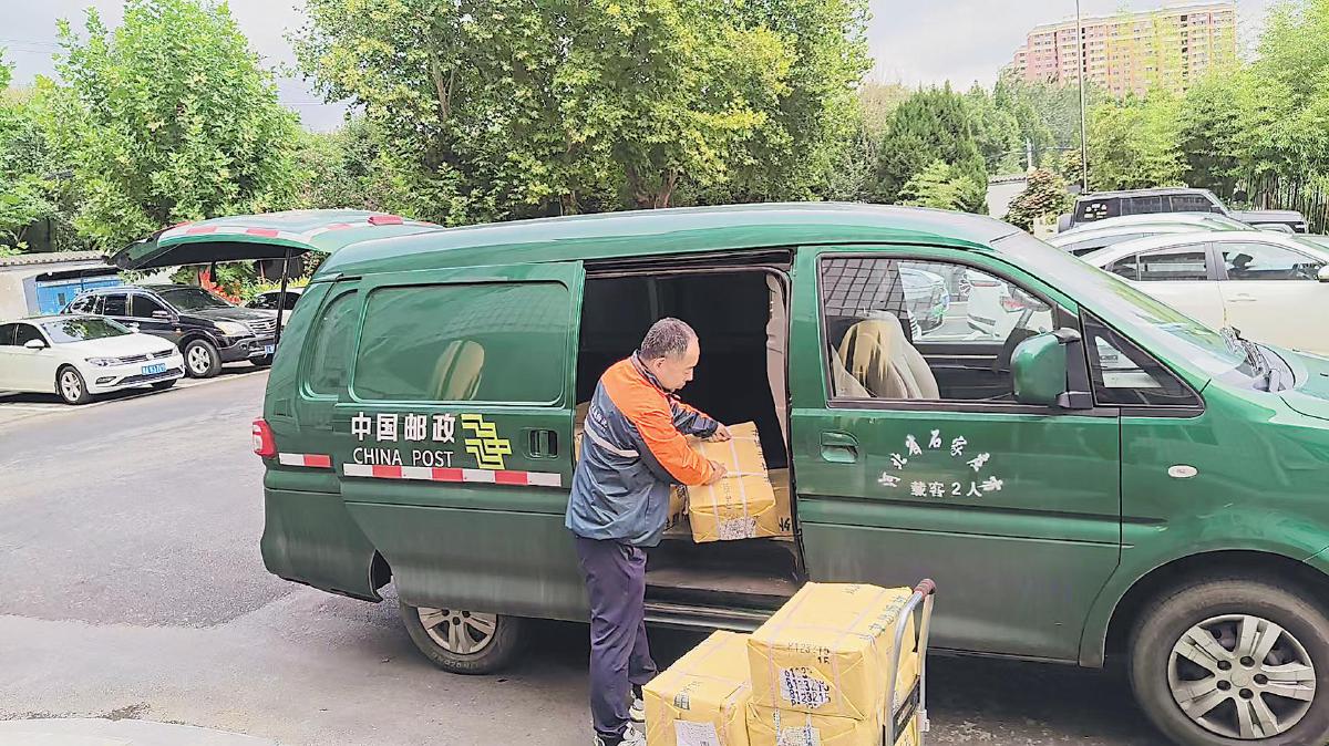 河北石家庄市分公司揽投员将重点政务图书搬上邮车准备配送。