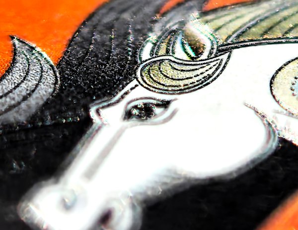 聚焦工艺创新 提升艺术表现 坚持在传承中创新,在规范中突破。在充分借鉴往年生肖邮票成功经验的基础上,深入研究生肖马邮票的设计语言与艺术特色,围绕印刷适应性、色彩还原度、质感呈现等进行多轮工艺试验与优化,高效完成打样批样。 针对生肖马邮票色彩明快、线条流畅的特点,在胶印部分,通过多次上机测试,调配特种专红与特种金属油墨两种专色墨,实现了色彩饱和度高、层次过渡自然的印刷效果。特种专红凝聚出深沉而炽烈的红色底蕴,这使得邮票颜色饱和浓郁,色彩表现力非常强;特种金属油墨则让画面流动起鎏金般的光泽。在雕刻印刷部分,测试了27种不同雕刻墨的上机效果,综合印制效果及难度,选择最符合图稿表达效果的、适合大批量生产的雕刻墨,并且攻克了细线条保持与大面积铺底协调的技术难点,最终采用高黑高亮高触感的雕刻黑墨。通过调整雕刻深度、优化油墨流动性,并严格控制印刷环境温湿度,确保了雕刻线条清晰饱满、套印准确、手感强烈,实现了艺术效果与印制质量的双赢。
