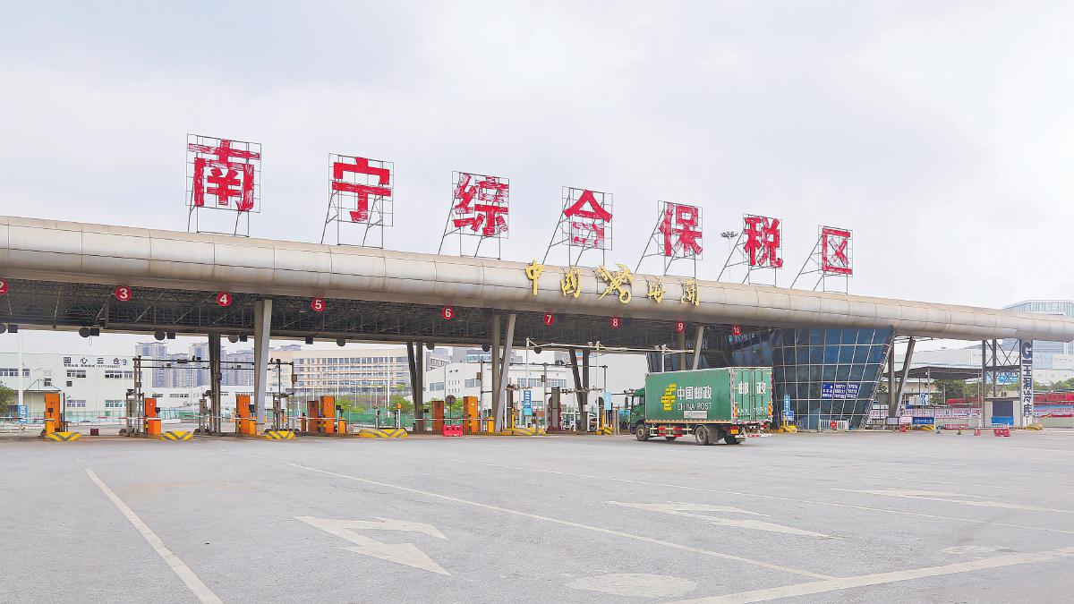 邮车满载货物驶入南宁综合保税区。