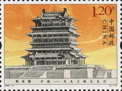 国家邮政局2009年8月14日发行《鹳雀楼与金门》特种邮票1套2枚(与乌克兰联合发行)。